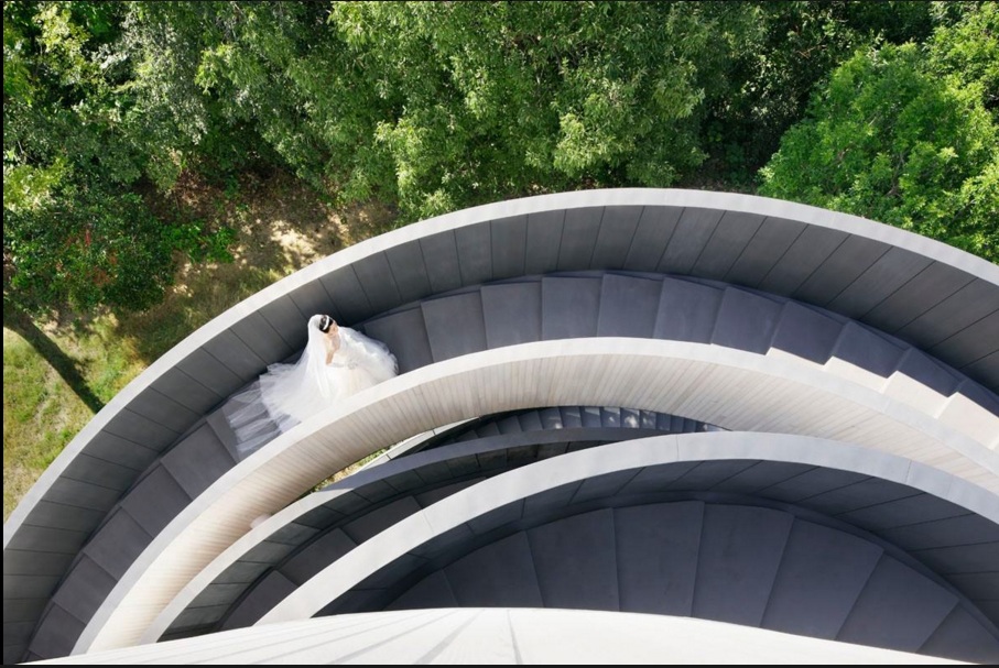 Lấy ý tưởng từ hai chiếc cầu thang xoắn vào nhau tượng trưng cho tình cảm của lứa đôi quấn quýt, thăng hoa tạo thành dải ruy băng màu trắng nổi bật giữa đất trời. Hai chiếc cầu thang được giao nhau tại một điểm, ở độ cao 15,4m. Nơi đây tạo thành không gian tổ chức tiệc cưới với 80 chỗ ngồi. Thánh đường này được tách biệt với bên ngoài bởi những tấm kính trong suốt giao hòa với khung cảnh thiên nhiên.