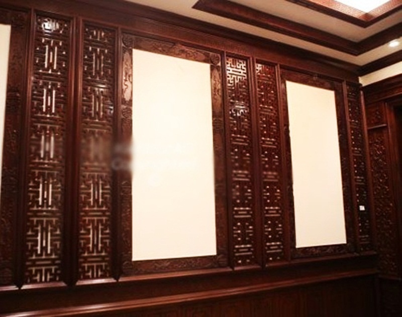 Tường nhà cũng được ốp gỗ với các hoa văn rất sáng tạo…