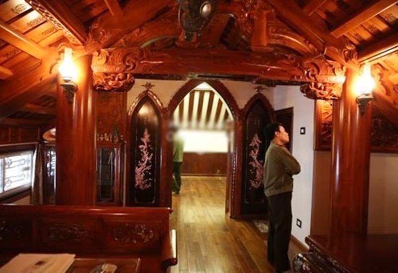 Ngôi biệt thự tại làng Việt kiều châu Âu (Hà Nội) khiến nhiều người trầm trồ khi sử dụng nội thất gỗ bạc tỷ theo lối kiến trúc thuần Việt.