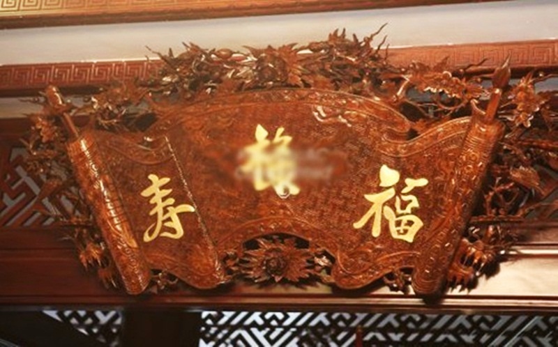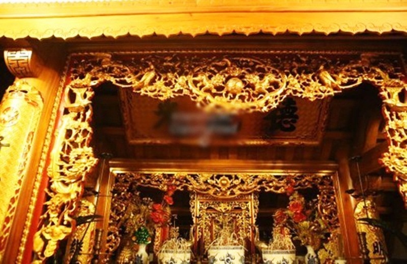 Ban thờ cũng được trang trí bằng các hoa văn cổ, sơn son thiếp vàng rất trang trọng và uy nghiêm.