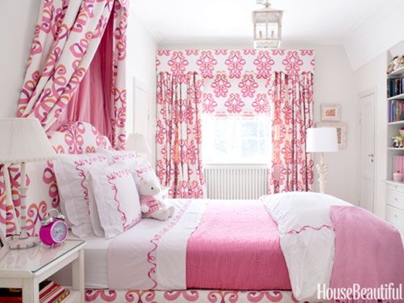 Căn phòng ngủ màu hồng là sự lựa chọn hàng đầu cho các cô nàng nữa tính. Toàn bộ drap, rèm cửa được phủ một màu hồng lãng mạn.