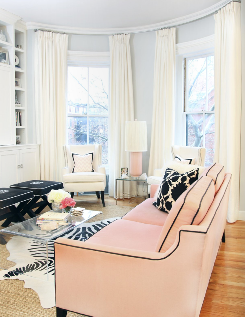 Ghế sofa hồng, điểm thêm rèm cửa cùng tông và các màu sắc vintage sẽ biến ngôi nhà bạn trở thành nơi thăng hoa cho Lễ tình nhân suốt năm.