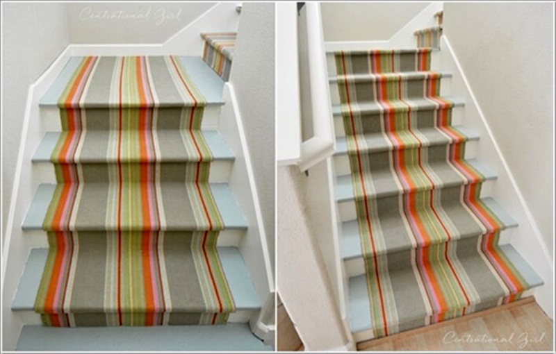 Hoặc để đảm bảo rằng cầu thang nhà mình đồng bộ bởi những đường kẻ thì bạn có thể khéo léo dùng sơn hoặc giấy dán
